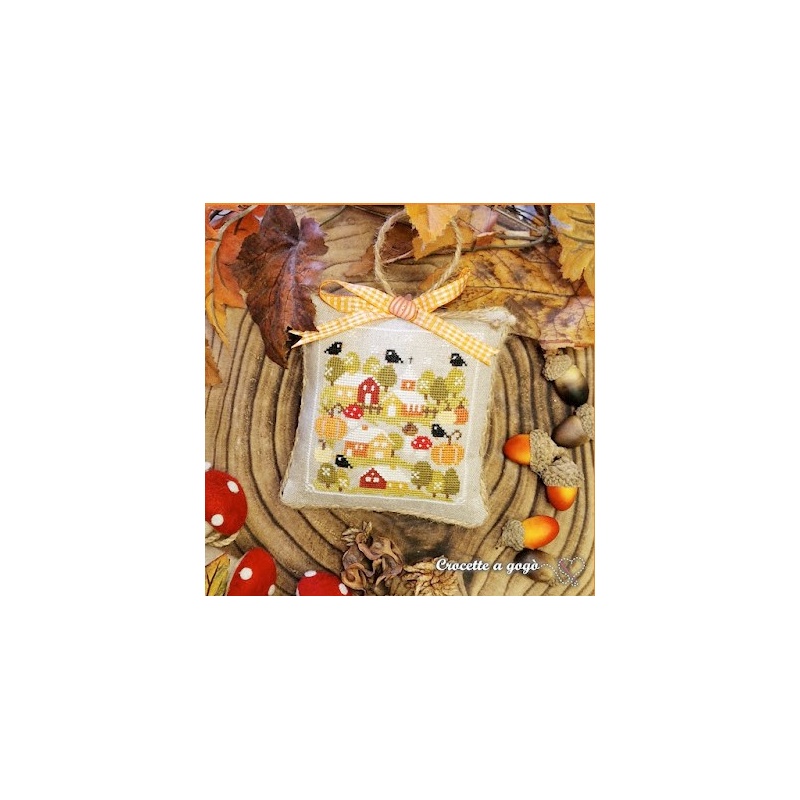 Fils DMC utilisés : Blanc, 833, 832, 3853, 310, 3855, 830, 801, 977, 921, 3777, 3852, 434, 321