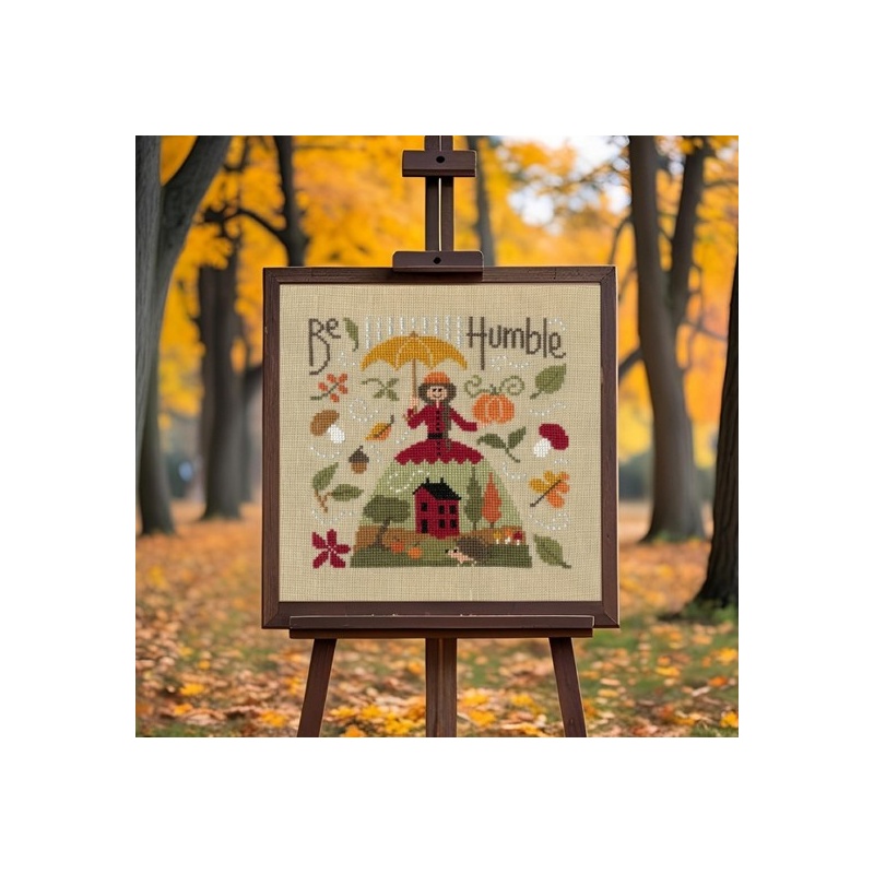Le modèle a été brodé sur une toile de lin 12 fils/cm (coloris 309 - mocha) avec 2 brins de coton et sur 2 fils de trame.