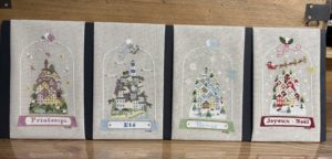 Et comme vous avez été nombreuses à les admirer à la boutique ou en salon, je vous mets toute la série brodée (eh oui, l’Automne n’est pas encore brodé)