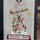 Aujourd’hui j’ai envie de vous partager un petit village sous la neige dans un dôme de verre. Le Père Noël et ses rennes survolent ce paysage féerique.