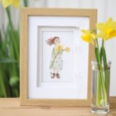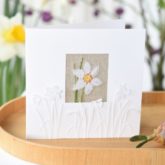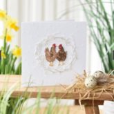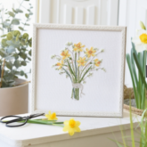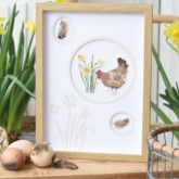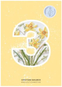 Ce 3e livret de Christiane Dahlbeck propose des motifs printaniers au point de croix, mêlant jonquilles éclatantes et scènes de basse-cour (poules et œufs).