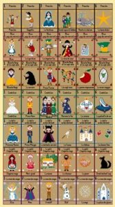 Quelle très belle idée de broder un jeu de cartes des 7 familles sur le thème des contes