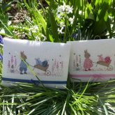 Voilà Perline et Elliott sont tous les 2 prêts pour la chasse aux oeufs de Pâques. Enfin … brodés devrais-je …