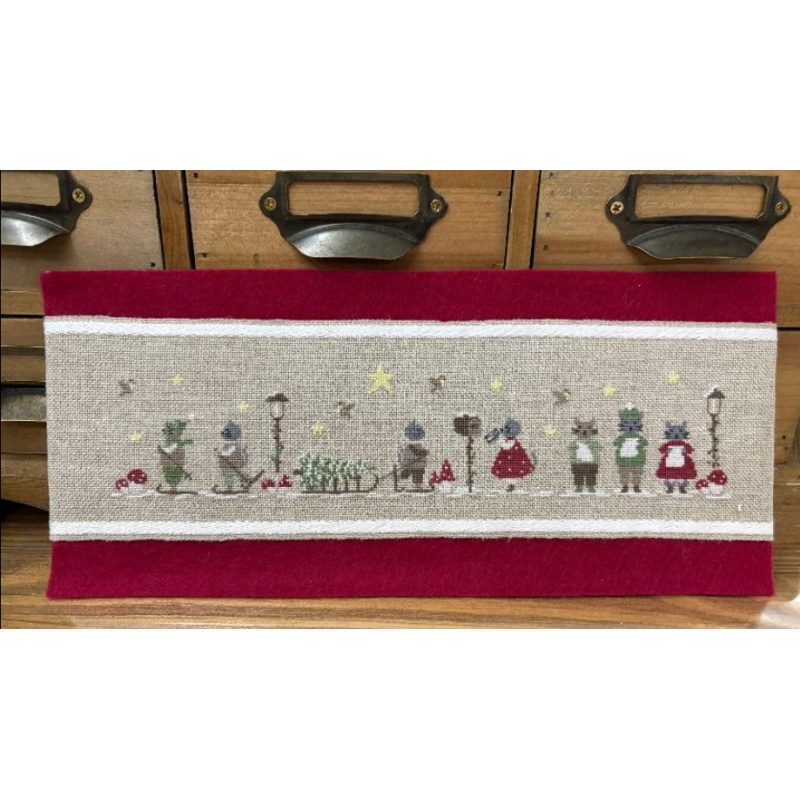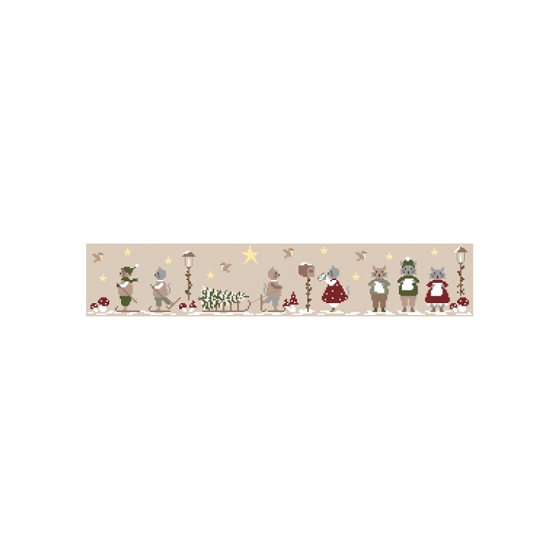 Dimension de la broderie : 264 X 47 pts soit sur une toile de lin 12 fils/cm (ou aïda 6 pts) : env 44 X 7.8 cm,