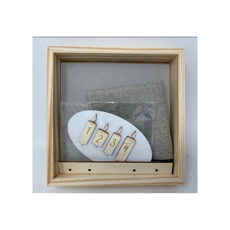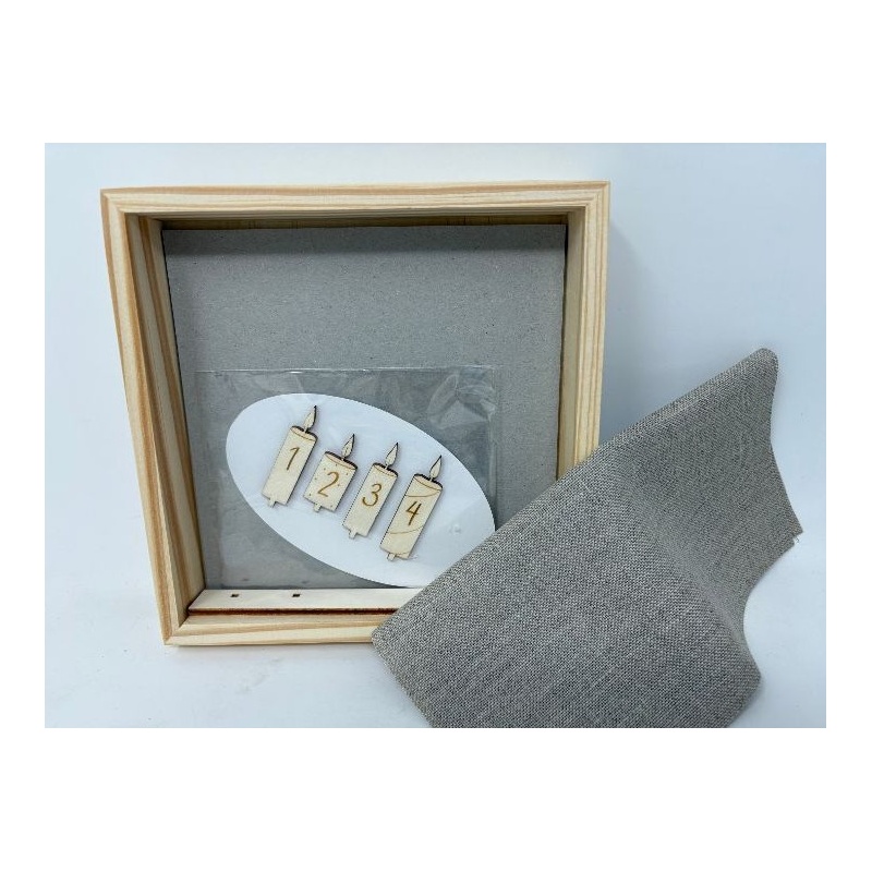 Cadre carré en Bois avec bougies amovibles V/1378 et lin 12 fils/cm naturel