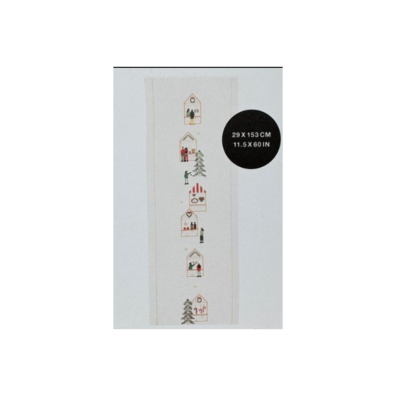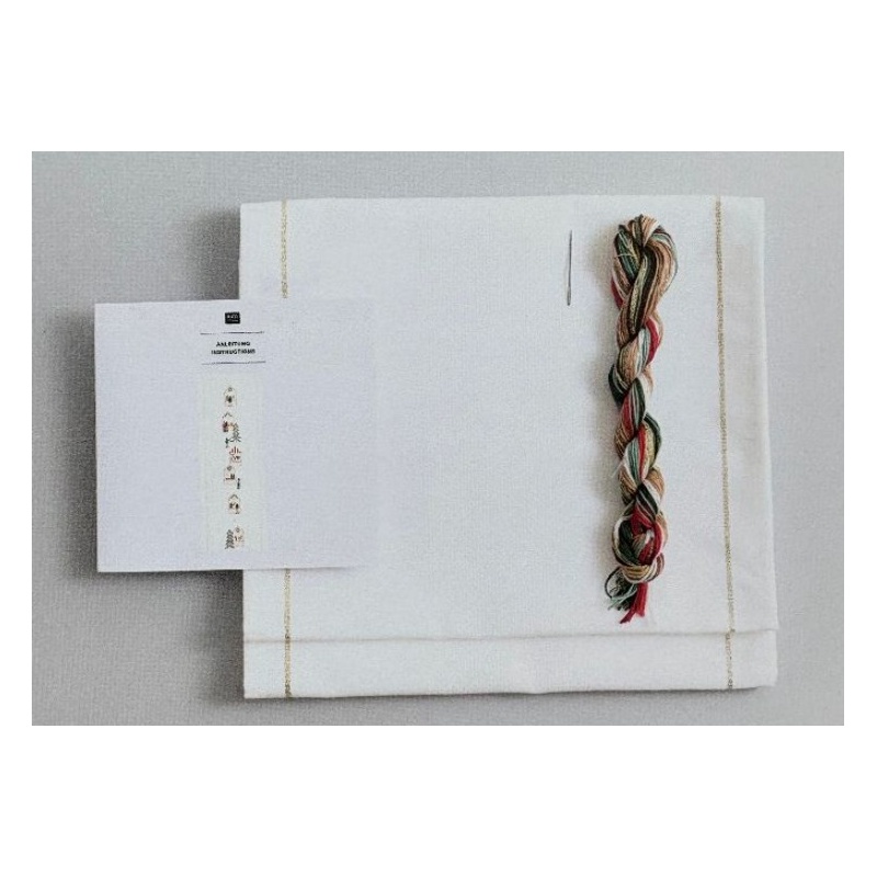 Le kit contient : Chemin de Table 29 X 153 cm 73% coton - 26% polyester et 1% Lurex, fils à broder, aiguille et instruction