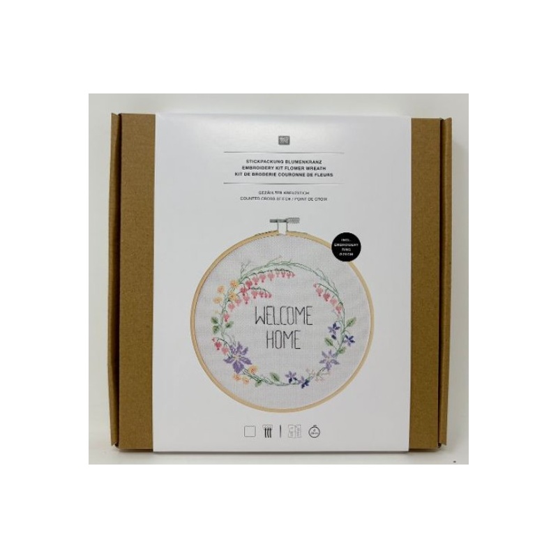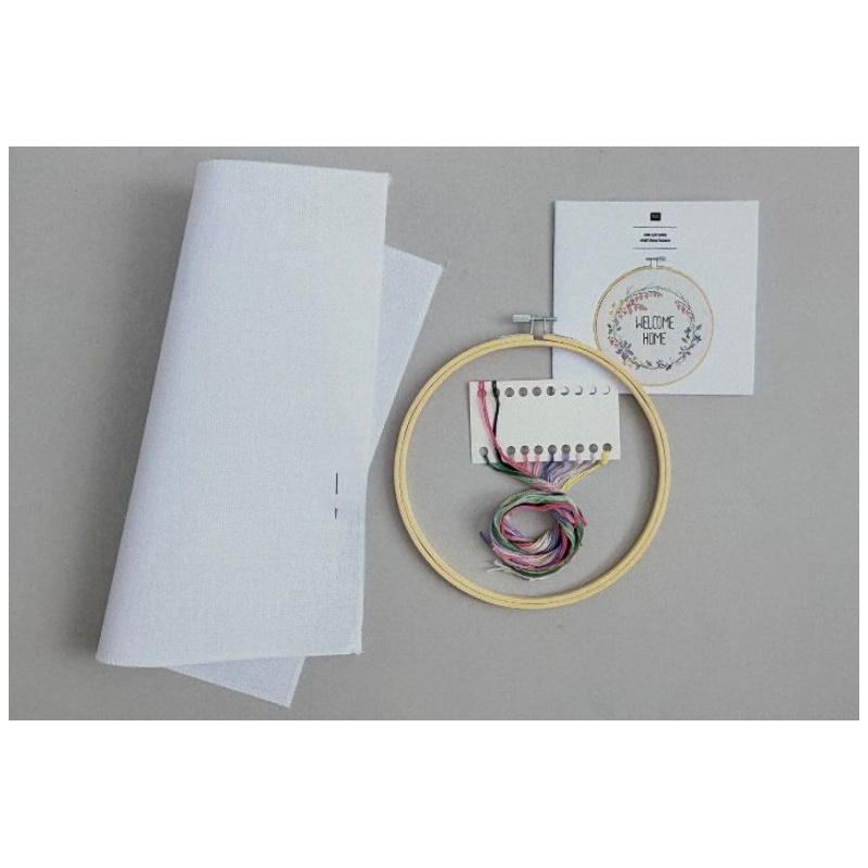 Le kit contient : Toile à broder Aïda 6.4 pts/cm 100% coton 35 x 35 cm, Tambour à broder de diamètre 20cm, fils à broder, aiguille et instruction