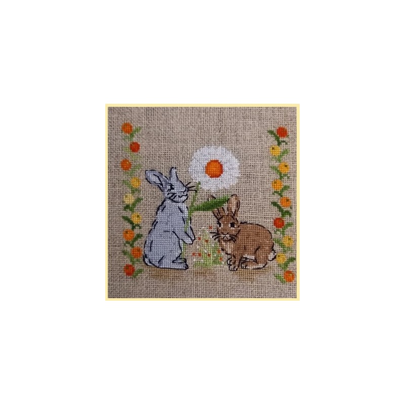 ou sur une toile de lin 14 fils/cm et sur 2 fils de trame (ou aïda 7 pts) : 12.8 X 11.4 cm