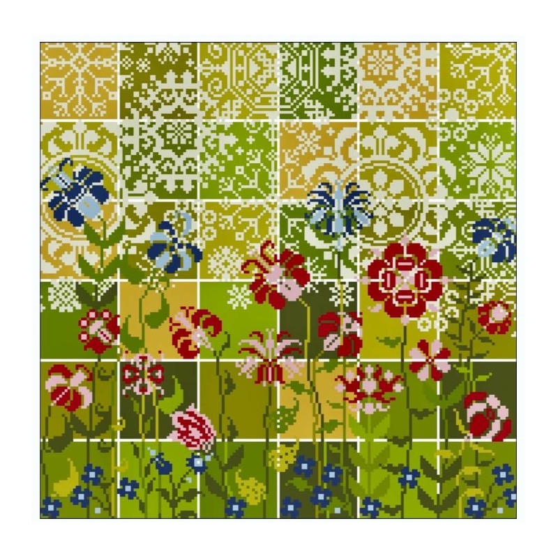 sur une toile de lin 12 fils/cm et sur 2 fils de trame (ou aïda 6 pts) : 28.8 X 28.8 cm