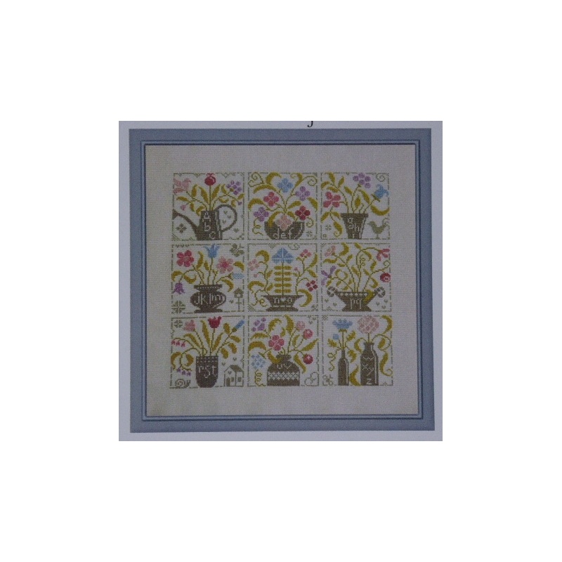 Le modèle a été brodé sur une toile de lin Belfast 12 fils/cm coloris 99 avec 2 brins de coton DMC sur 2 fils de trame