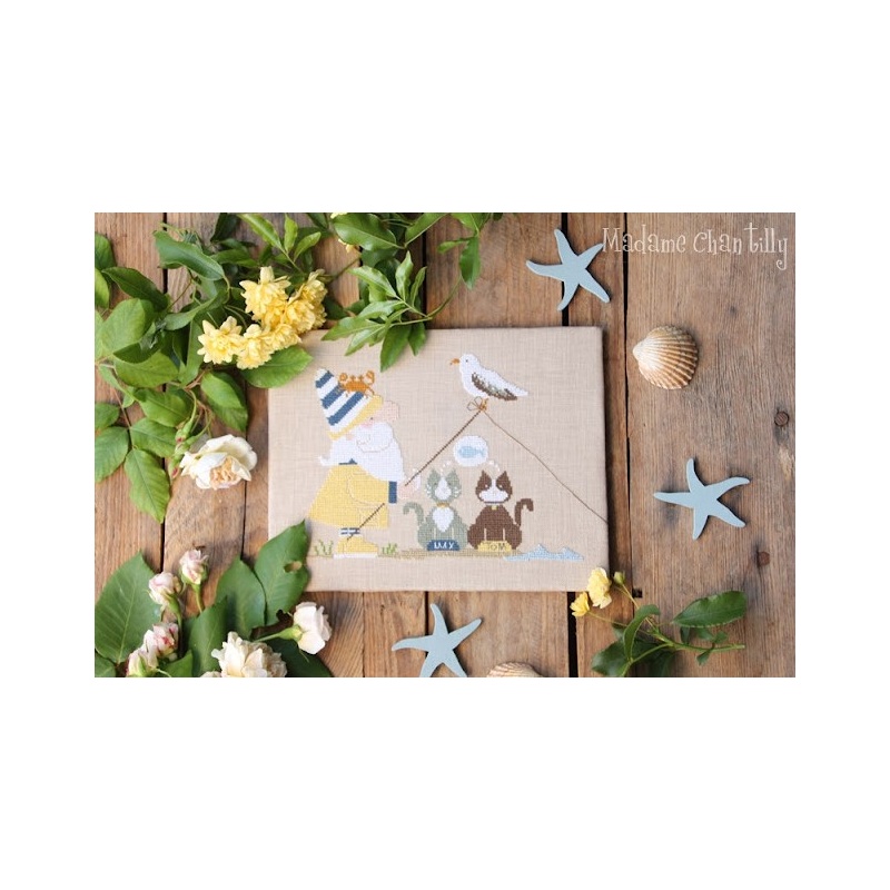 Fils DMC utilisés : 470, 612, 761, 782, 930, 930, 950, 3022, 3752, 3781, 3822, Blanc