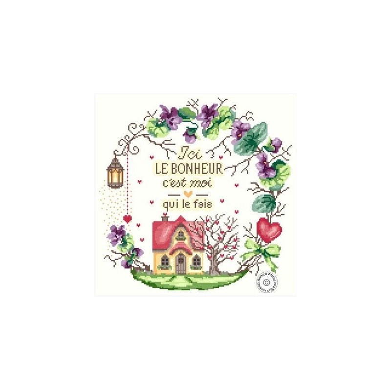 Grille de broderie en point de croix , point compté représentant Une couronne qui met en avant le bonheur