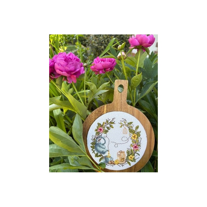 Fils DMC utilisés : 347, 433, 435, 437, 543, 727, 728, 732, 734, 738, 739, 760, 777, 782, 839, 841, 842, 926, 927, 928,