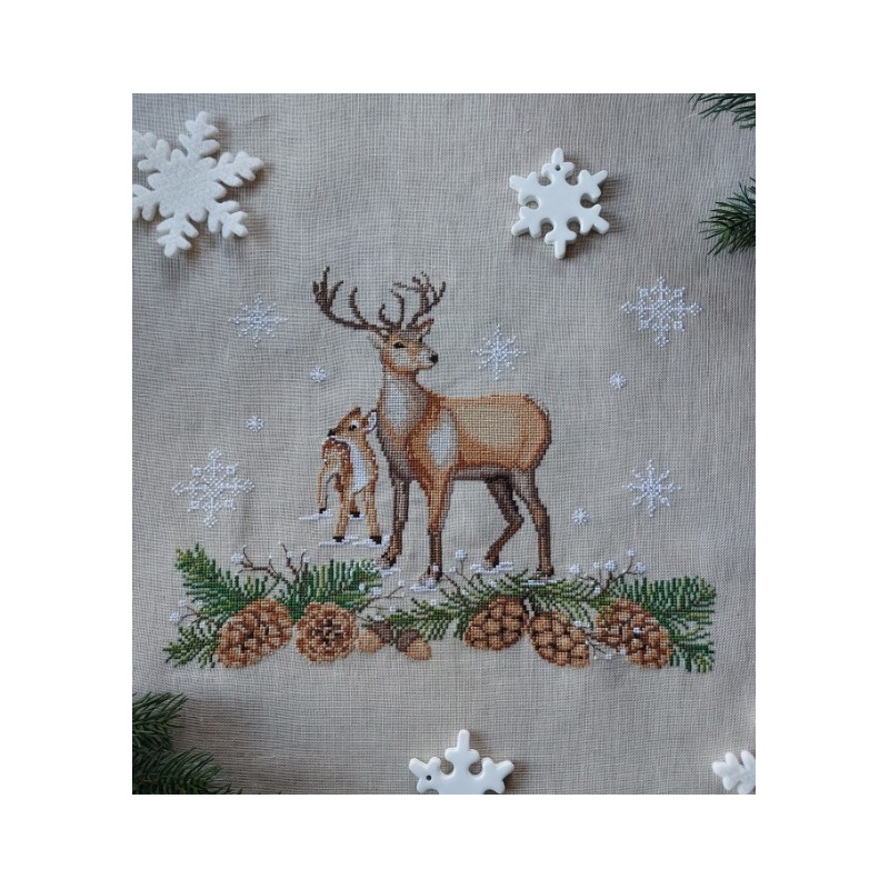 Fils DMC utilisés : B5200, 434, 436, 437, 470, 648, 738, 839, 840, 841, 842, 936, 937, 986, 987, 3371, 3866