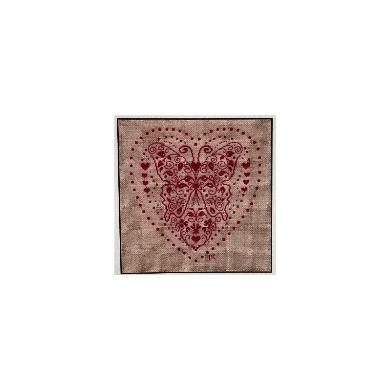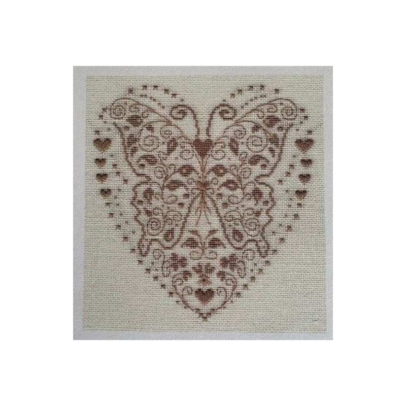 Diagramme de broderie en point de croix , point compté représentant un Coeur avec un Papillon.
