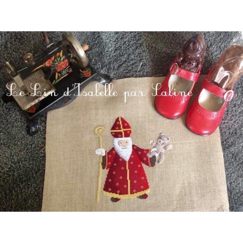 La création a été brodée sur une toile de lin 12 fils/cm coloris naturel et sur 2 fils de trame