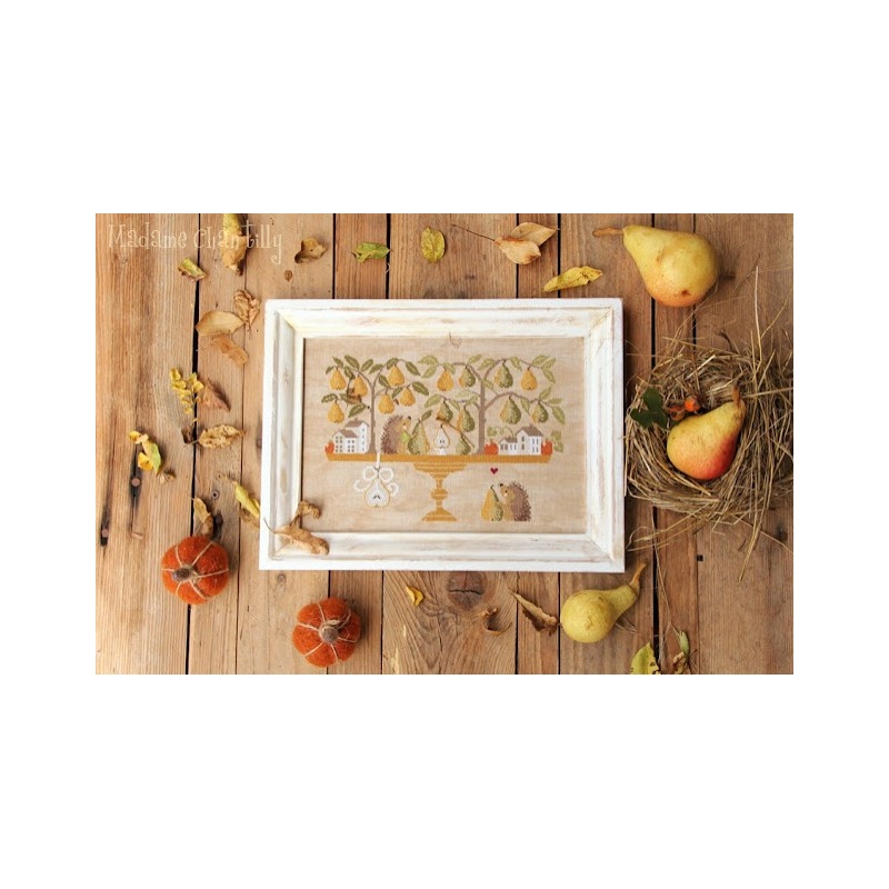 Fils DMC utilisés : 225, 301, 372, 680, 729, 815, 839, 840, 3011, 3012, 3033, 3045, 3371, 3790, Blanc