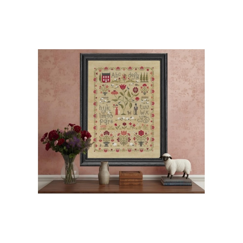 Le modèle a été brodé sur une toile de lin 12 fils/cm (coloris 3009 - Vintage mocha) avec 2 brins de coton et sur 2 fils de trame.