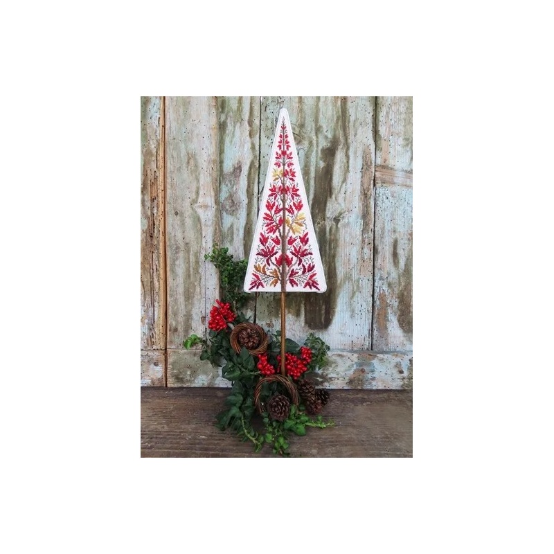 Fils DMC utilisés : 814, 816, 321, 3781, 840, 349, 782, 3820, 3822, 780
