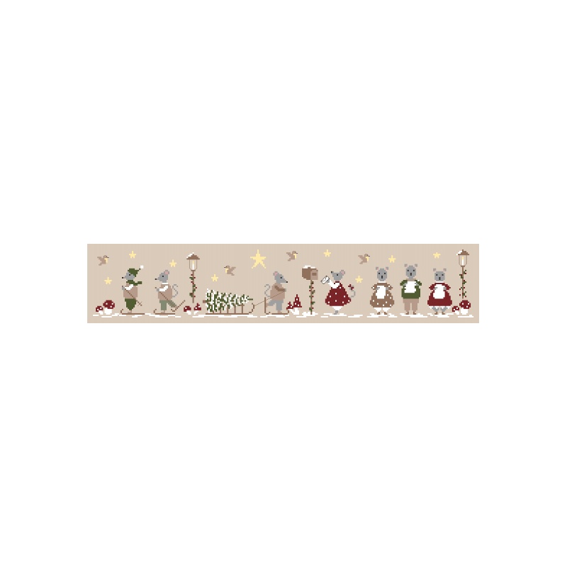 Dimension de la broderie : 264 X 47 pts soit sur une toile de lin 12 fils/cm (ou aïda 6 pts) : env 44 X 7.8 cm,