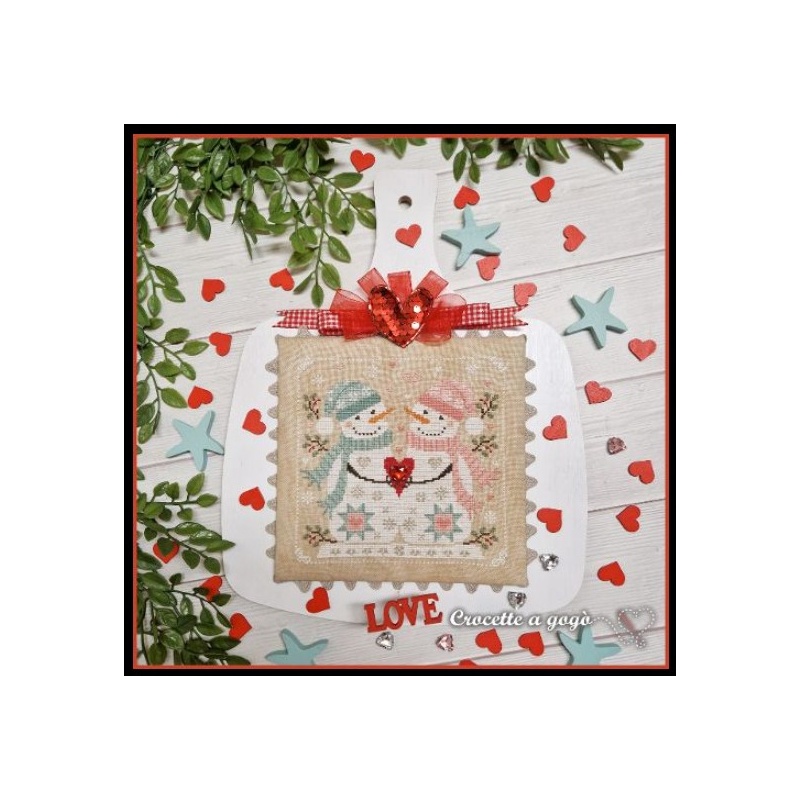 Le modèle a été brodé aux points de croix sur 2 fils de trame sur une toile de lin Zweigart 14 fils/cm coloris 3009 - Vintage Mocha